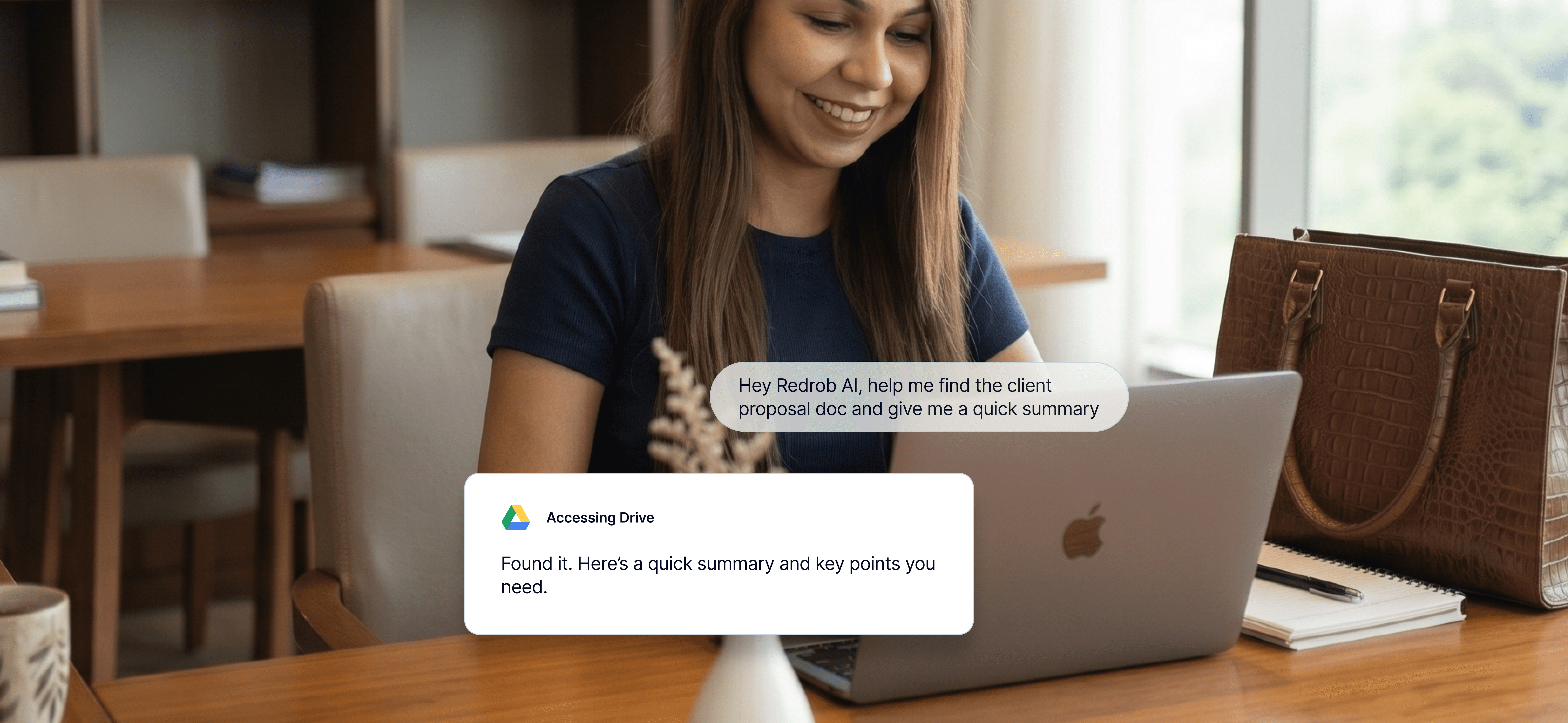 Ask anything in plain English (or Hindi, Tamil, and more). Redrob scans your connected drives using AI-powered document search - not just filenames, but actual content inside files.