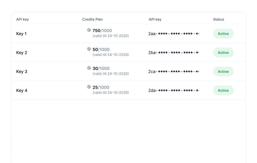 Maximize your budget with our credit system. You’re only charged when we return verified contact data, never for failed matches or duplicates.